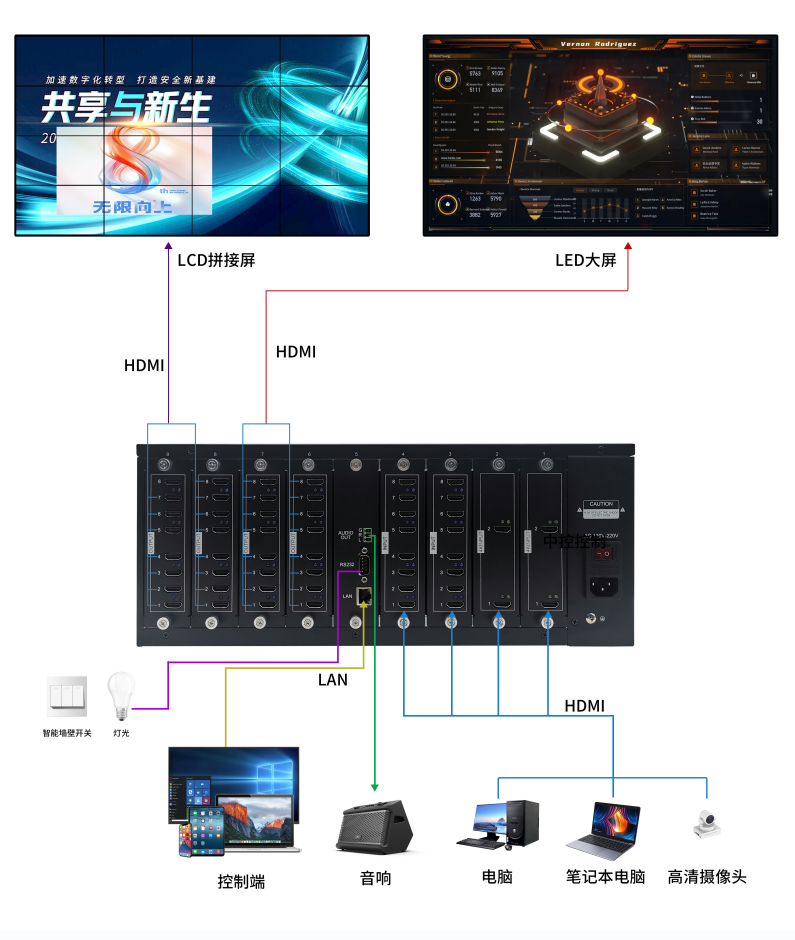 支持控制大屏幕以及中控的接入 |
